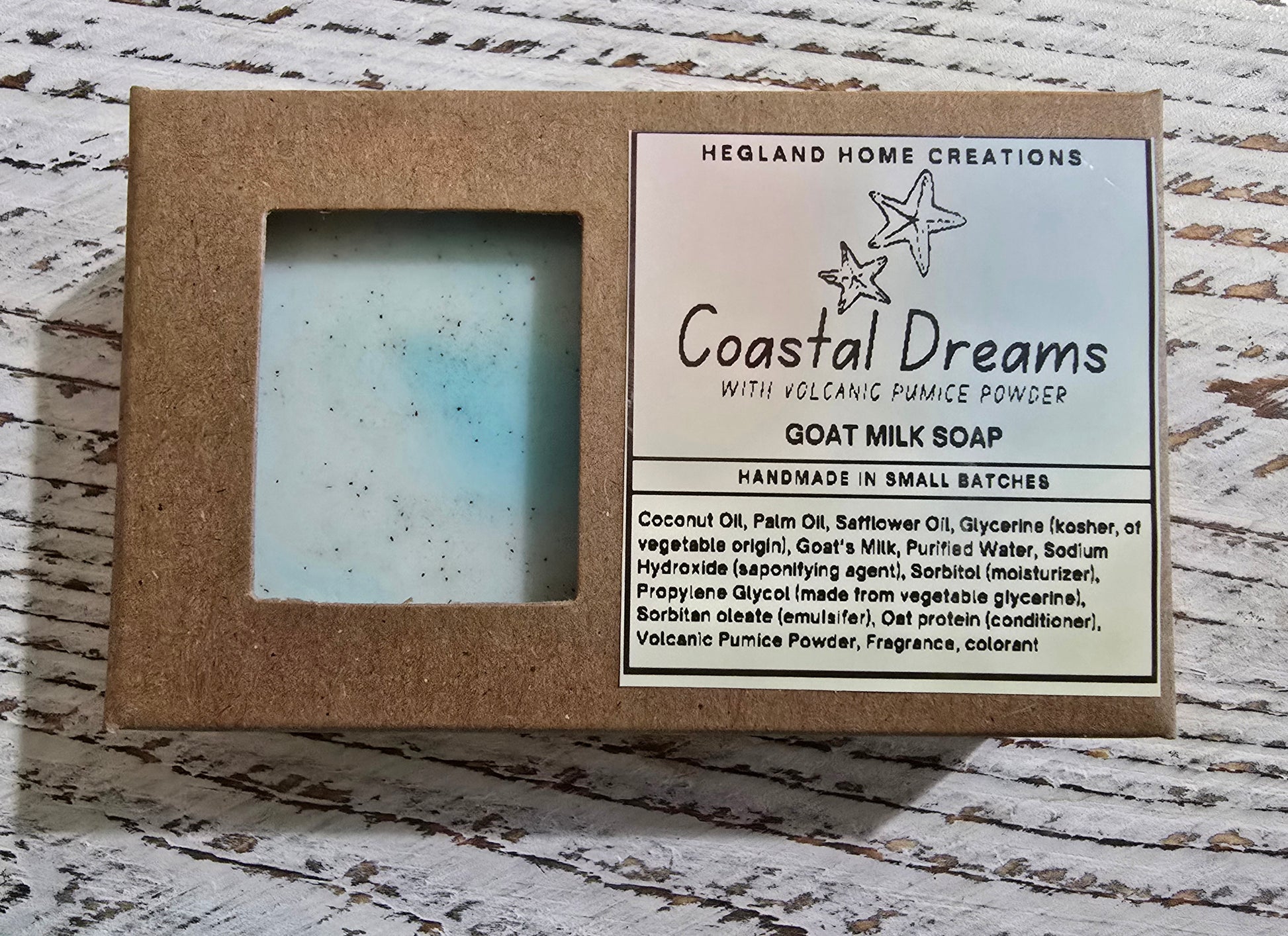 This goat milk soap is made in small batches. It has a nice rich lather that softens the skin. The ingredients are: